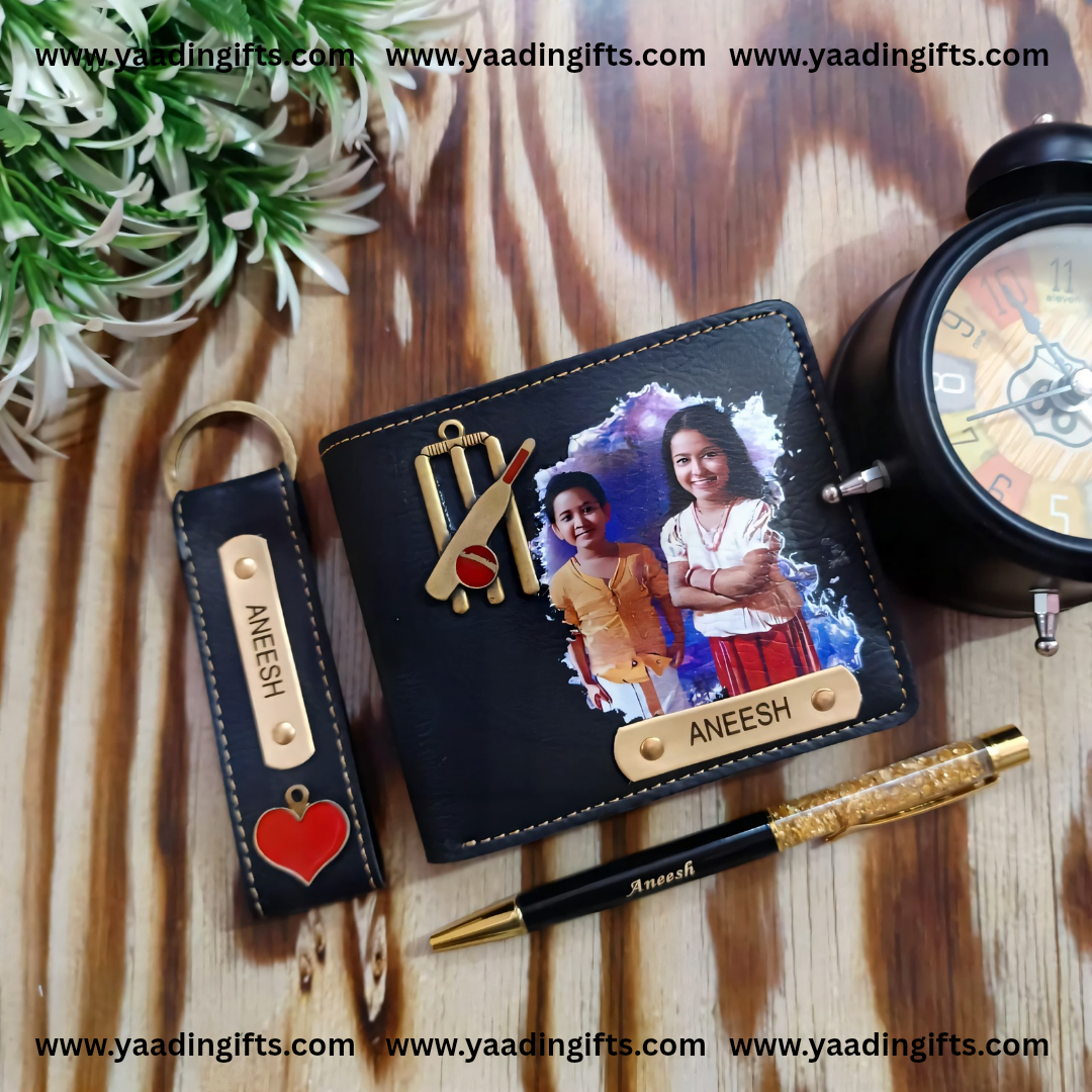 ♦️Scope of name and charm and photo can be customised on wallet . Name and charm in keychain. Name in pen.